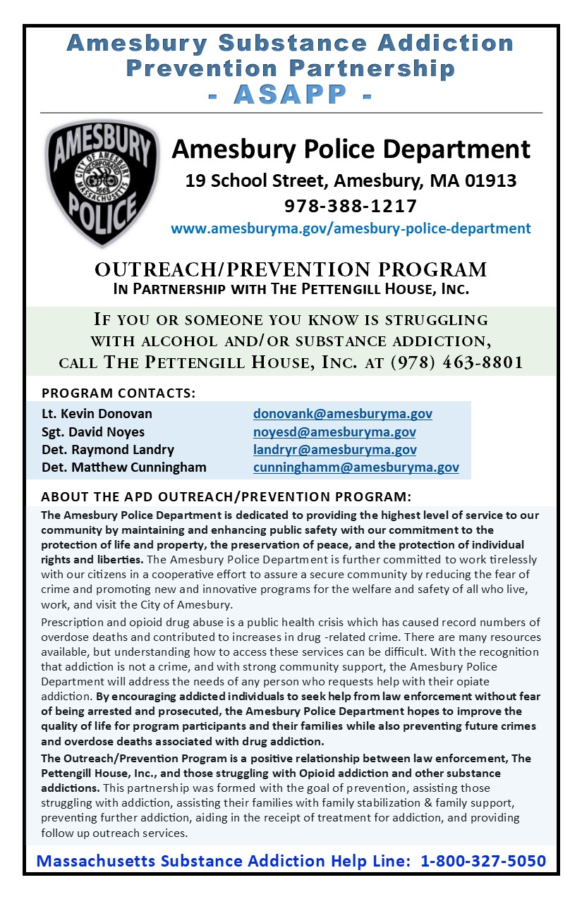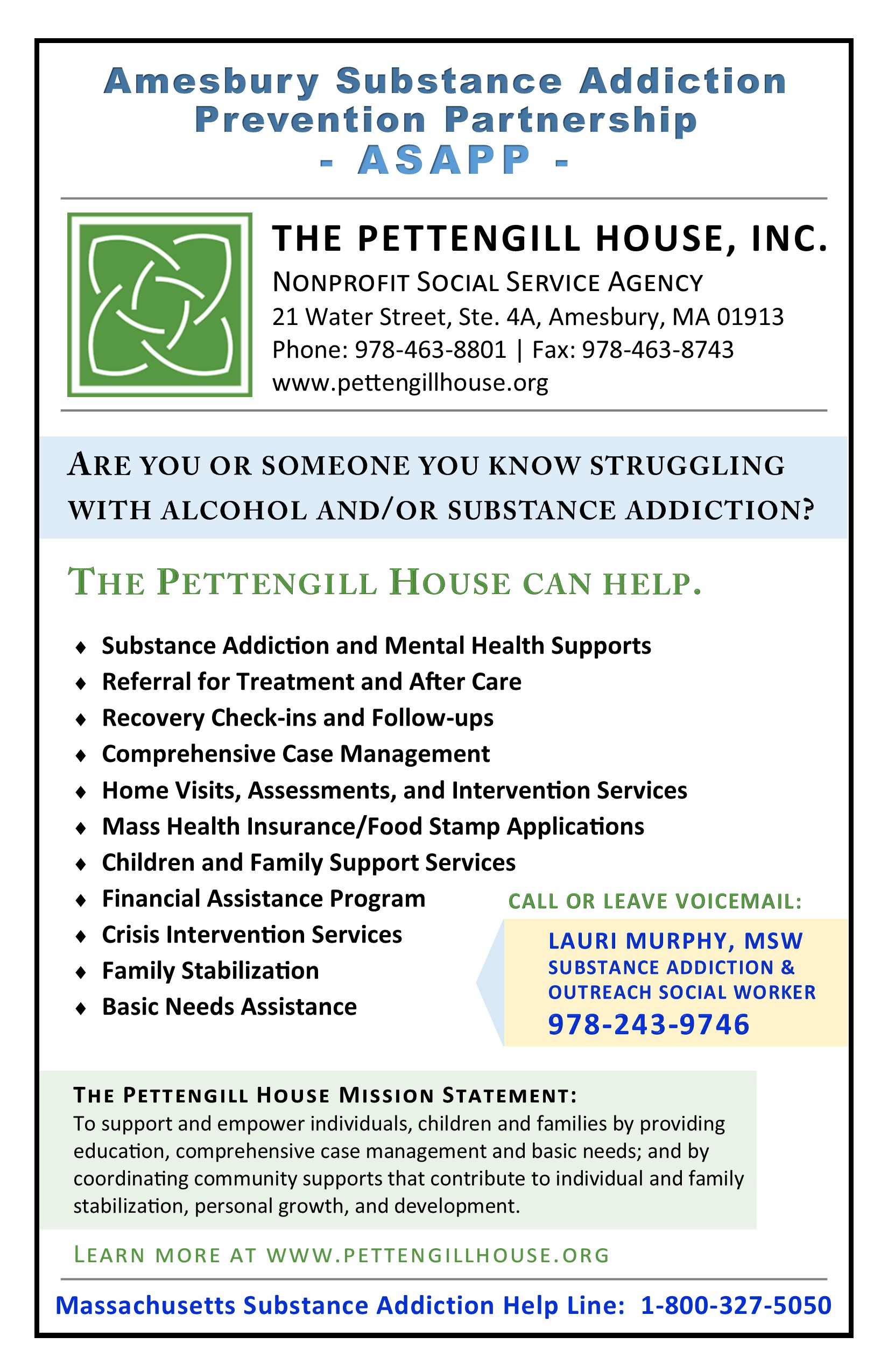 Through a community-wide initiative, The Pettengill House, Inc. works in collaborative partnership with local police to provide support for individuals and families who are struggling with alcohol and/or substance addiction. These partnerships help increase access to treatment, raise awareness and educate the community, break down barriers, and de-stigmatize addiction.